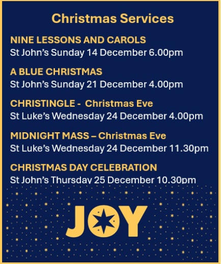 Sunday 16 November in St John’s Church 9.15am Morning Prayer 10.00am Parish Eucharist 6:30pm Joint Evening Service @Lancaster Road URC Midweek Service of the Word at St Luke’s this week Wednesday 9:15am followed by coffee Morning Prayer Tuesday, Wednesday & Thursday 8.00am St Luke’s Lady Chapel Sunday 23 November in St John’s Church 9.15am Morning Prayer 10.00am Parish Eucharist 5.00pm BCP Evening Prayer with discussion – St John’s